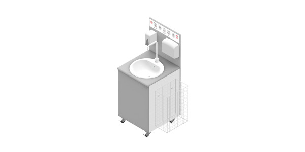 Estações móveis de lavagem de mãos sem necessidade de contato, nem necessidade de ligação a canalização ou energia elétrica.